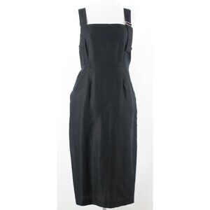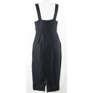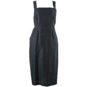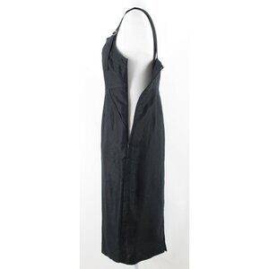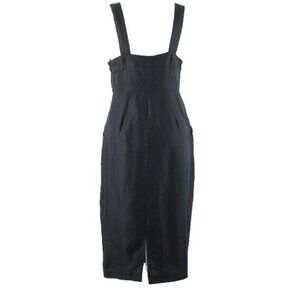 Avec Les Filles $98 Sz 6 Solid Black Kick Pleat Fitted Linen Cotton Dress