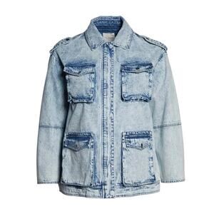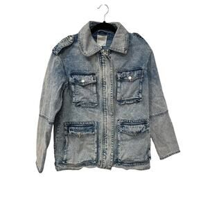 Avec Les Filles Acid Wash Denim Utility Jacket Size Medium Safari Style
