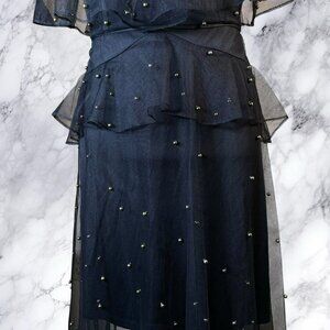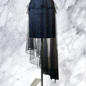 Ruffled sheer mesh overlay on mini length