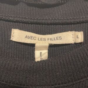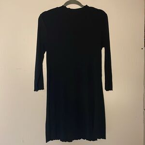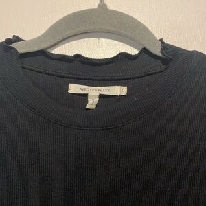 Avec Les Filles- Black 3/4 Length Sleeves Scalloped Hem Midi Dress- Size Large