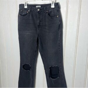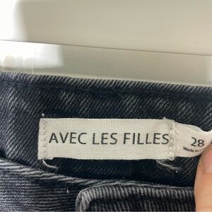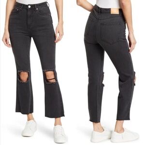Avec Les Filles Black Cropped Bootleg Distressed Jeans