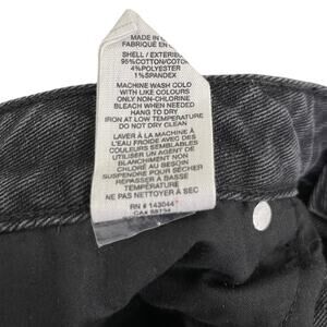 Avec Les Filles Black Distressed High Rise Jeans. Straight leg fit with cropped raw frayed hem. Distressed knee details. A little bit of stretch.