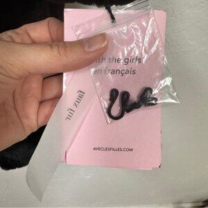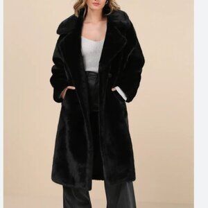Avec Les Filles Black Faux Fur Long Coat Womens L Classic Warm Jacket Preppy