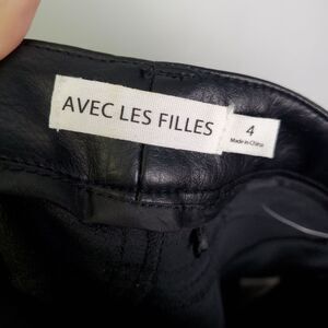Avec Les Filles Black Faux Leather Barrel Leg Pants Size 4