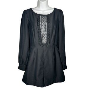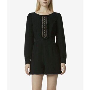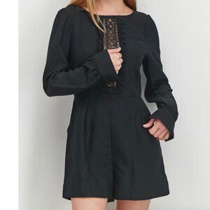 Avec Les Filles Black Lace-Inset Romper Long Sleeve Ruffle Evening 6