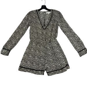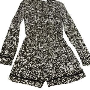 Avec Les Filles Black White Polka Dot Long Sleeve Romper XS