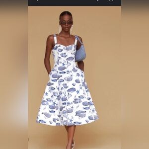 🔹️Avec Les Filles🔹️ Blue Marina Fish Printed Midi Dress Size 6 + 14