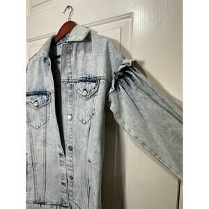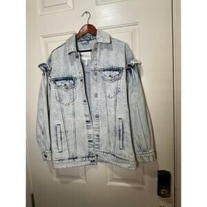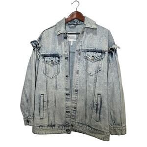 Avec Les Filles Ruffle Sleeve Acid Wash Oversized Denim Jacket Size XS