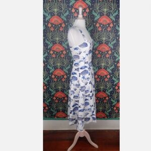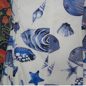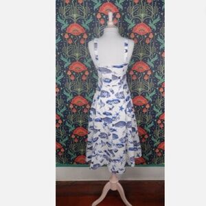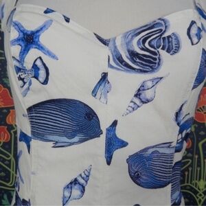 Avec Les Filles Blue White Fish Seashell Nautical Fit Flare Dress 6