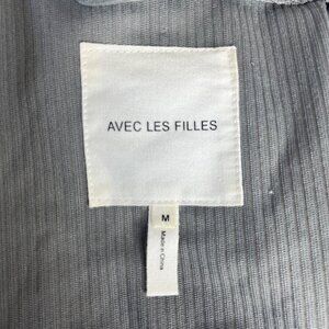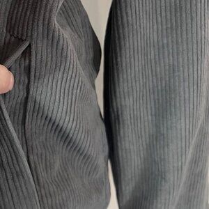 Stylish Avec Les Filles corduroy shirt jacket for women in a neutral gray. Medium size with a button front and pockets for practicality and convenience.