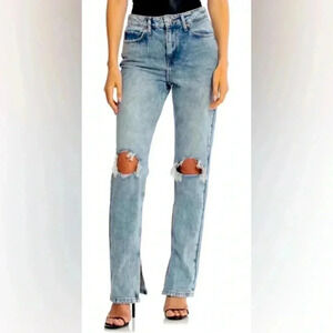 Avec Les Filles Cool Girl Distressed High Rise Straight Jeans 29 Workshop Blue