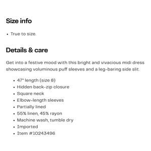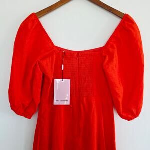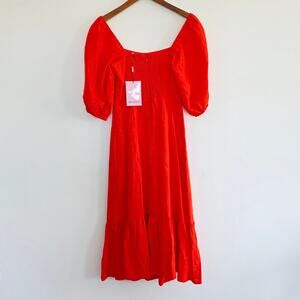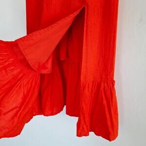 Avec Les Filles Linen Blend Coral Orange / Red Puff Sleeve Side Slit Tiered Midi Dress Size 2 / XS