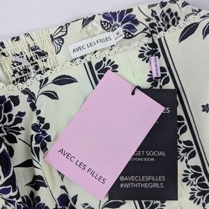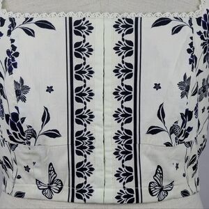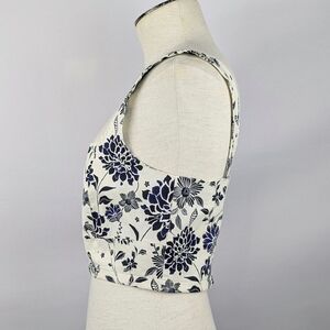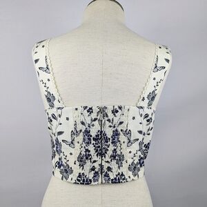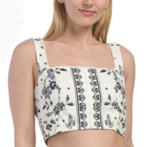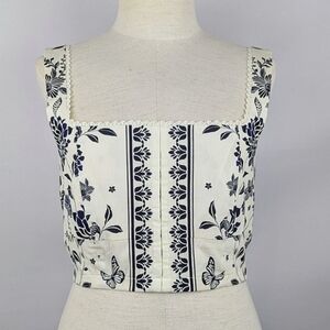 Avec Les Filles Corset Top Cropped Square Neck Sleeveless Floral Natural M NWT