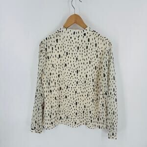 Avec Les Filles Cream Black Dot Ruffle Tie Neck Blouse Size Medium