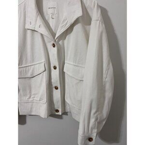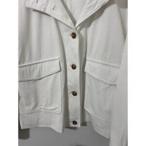 Stylish cream corduroy jacket. Features button closure and front pockets. Perfect for layering. This shacket is so cute, but it was just a bit big for me!
