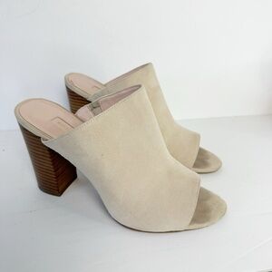 Avec Les Filles Creamy Tan Suede Mules Heels #151-1745 Sz 7.5