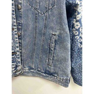 Avec Les Filles Denim Combo Trucker Jacket Size Medium Floral Patchwork Blue