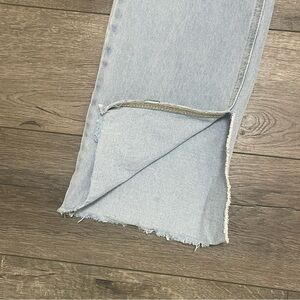 Avec Les Filles Distressed Jeans with Slit Hem in Powder Blue Light Wash Sz 30