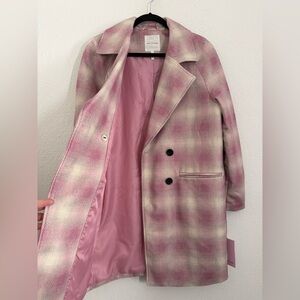 Avec Les Filles Dusty Pink Plaid Raglan Longline Walking Coat Size Small NEW
