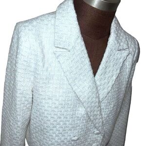 This elegant white textured jacket is perfect for any occasion. Its sophisticated design adds a touch of class to your wardrobe. Ideal for both casual and formal settings.