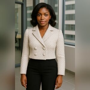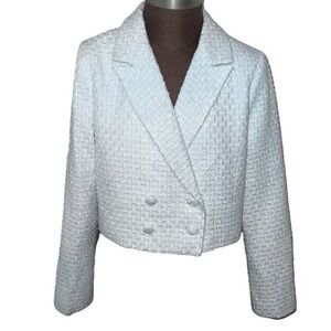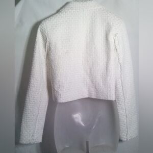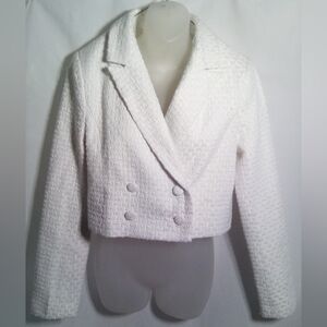 Avec Les Filles Elegant White Textured Waist Length Women's Blazer Jacket Small