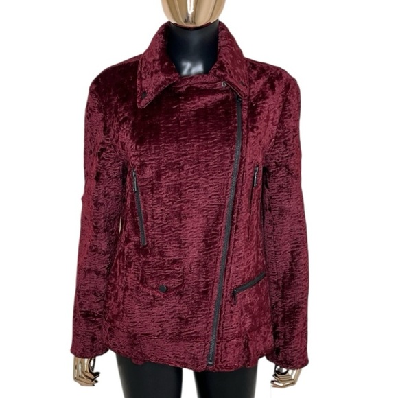 Avec Les Filles Faux Fur Moto Jacket Burgundy Wine XS Oversized NWT