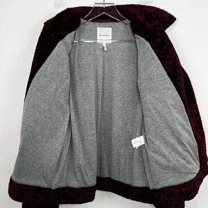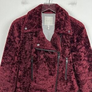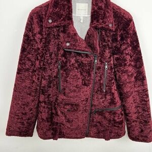 Avec Les Filles Faux Fur Moto Jacket Small Burgundy Full Zip Cozy Winter
