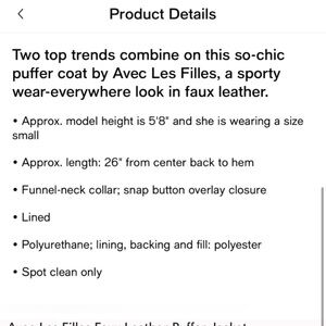 Avec Les Filles Faux Leather Puffer Jacket Sz XL NEW