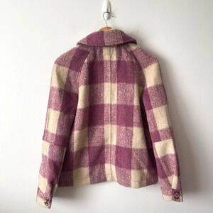 Avec Les Filles Felted Plaid Check Zip Shacket Shirt Jacket Purple Cream Small