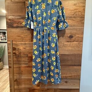 Avec Les Filles Floral Wrap Dress in Blue, Small