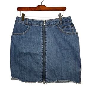 Avec Les Filles Front Zip Denim Jean Mini Skirt Blue Size 30 Western Grunge Y2K