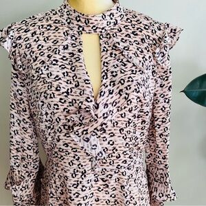 Avec Les Filles Leopard Ruffled Fit & Flare Dress