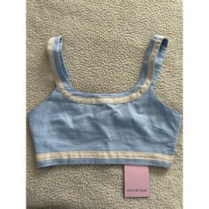 Avec Les Filles Linen Blend Crop Tank Top Ice Blue Size S