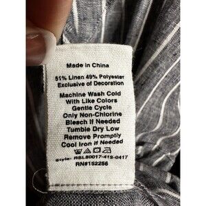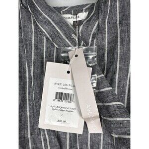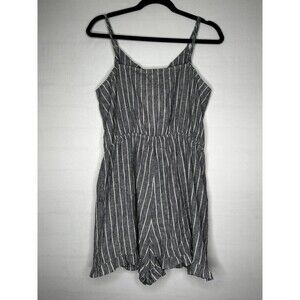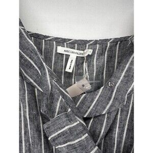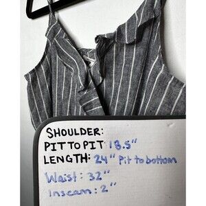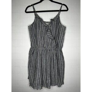 Avec Les Filles Linen Blend Striped Ruffle Romper Indigo Heather Size Large NEW