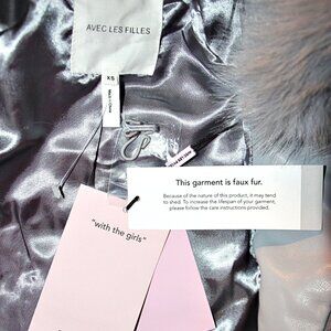 Avec Les Filles Luxurious Faux-Fur Cropped Paneled Coat in Grey Blue sz XS $199