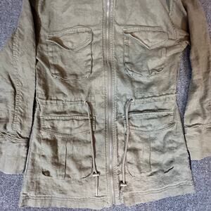 Avec Les Filles Military Army Style Linen Jacket Olive Green Women's Size S