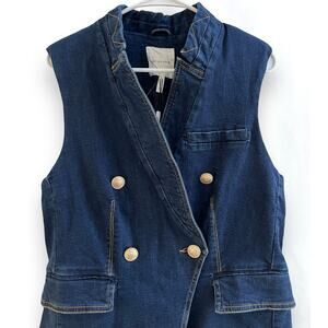 Avec Les Filles NWT Anthropologie Denim Double Breasted Sleeveless Vest Medium