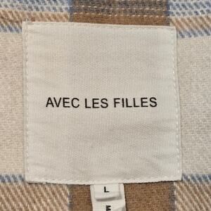 Avec Les Filles Neutral Plaid Shacket Oversized Shirt Jacket Button Front, Large
