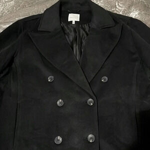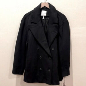 The classic double-breasted peacoat is updated with relaxed dropped shoulders and an oversized silhouette in a cocoon shape sure to keep you cozy and cute.