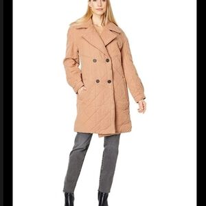 Avec Les Filles Quilted Double Breasted Peacoat Caramel Brown Coat Small