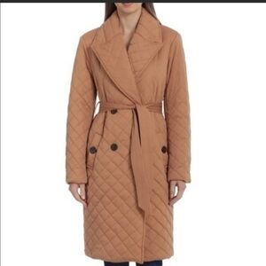 Avec Les Filles Quilted Double-Breasted Water Resistant Lightweight Trench coat