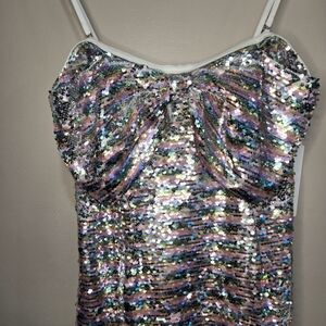 Avec Les Filles Rainbow Sequin Bow Mini Dress