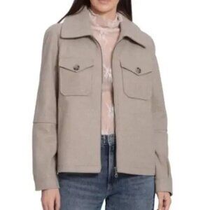 Avec Les Filles Relaxed Zip Front Shirt Jacket Oatmeal Felted Size Medium