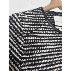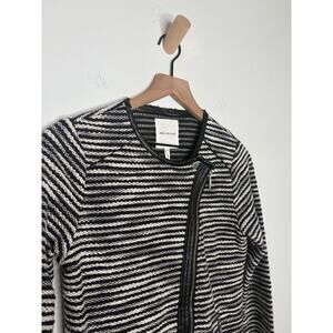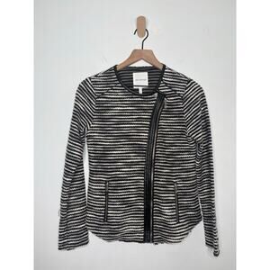 Avec Les Filles Stripe Knit Moto Jacket Small Navy Blue White Asymmetrical Zip