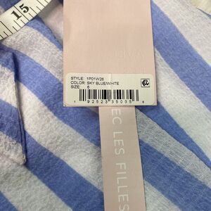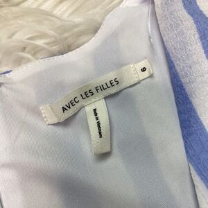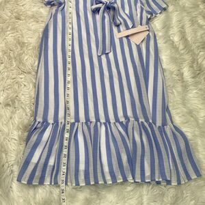 Avec Les Filles Striped Ruffle Hem Shift Dress Size 6 Sky Blue White NWT
