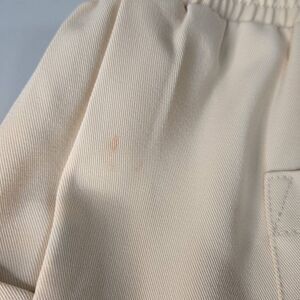 Flaws: Has a stain on the side(red stain) and stain on the bottom and back of pants that are hard to see, but I tried to capture on photos. I have not attempted to remove stains.