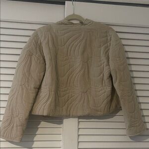 Chic quilted design with a modern utility style. Features front pockets and a comfortable fit. Ideal for layering.