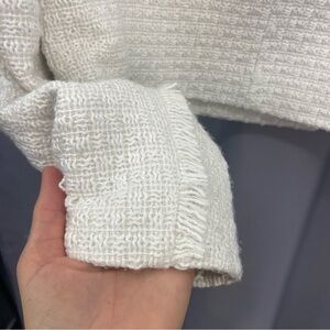 Avec Les Filles White Double Breasted Tweed Textured Crop Blazer Fringe Size Med