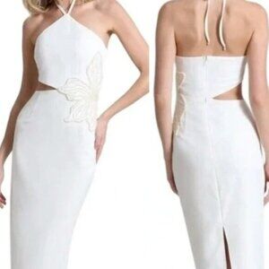 Avec Les Filles Women's White Halter-Neck Floral Appliqué Midi Length Dress Women's Size 12 Brand New with Tags NWT Reg. Retail $199.00