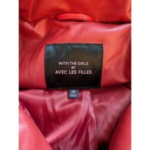 Avec Les Filles Womens Faux Leather Puffer Coat Size 2X Red Pockets Snap Vegan